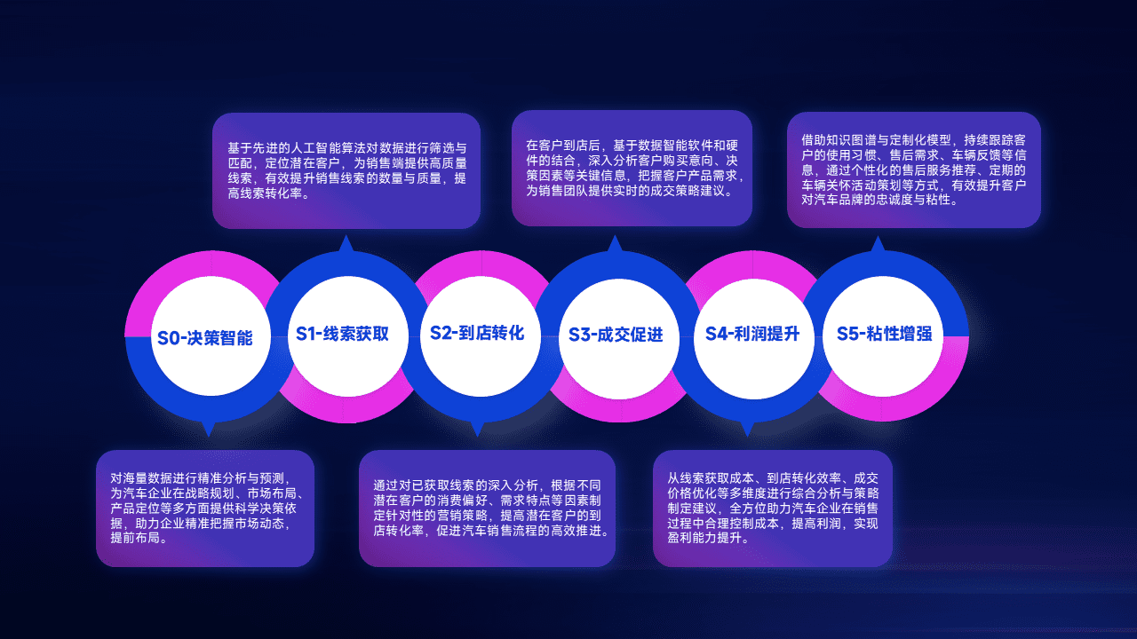 通过拓宽潜在客户来源、、、优化线索分配并提高到店转化率,,以增强销售效率。。同时,,,,利用线索数据不断优化分析模型,,有效提升转化率,,扩大营销影响力。。。。